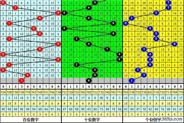个位:上期为3,质号,质号最近两周大热,热出2次,本期关爱号码1。